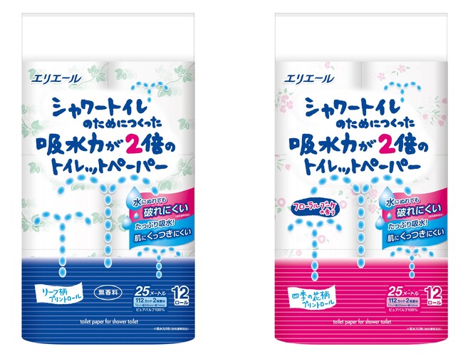 ▼「シャワートイレのためにつくった吸水力が2倍のトイレットペーパー」シリーズ