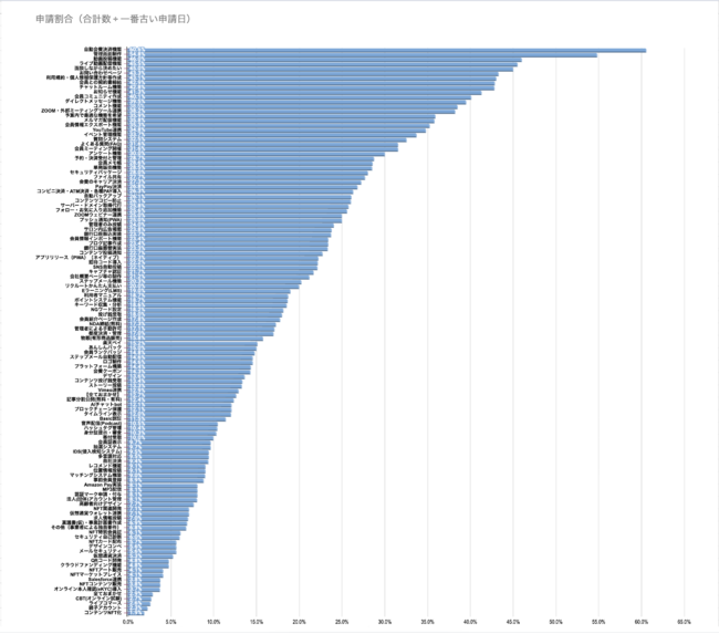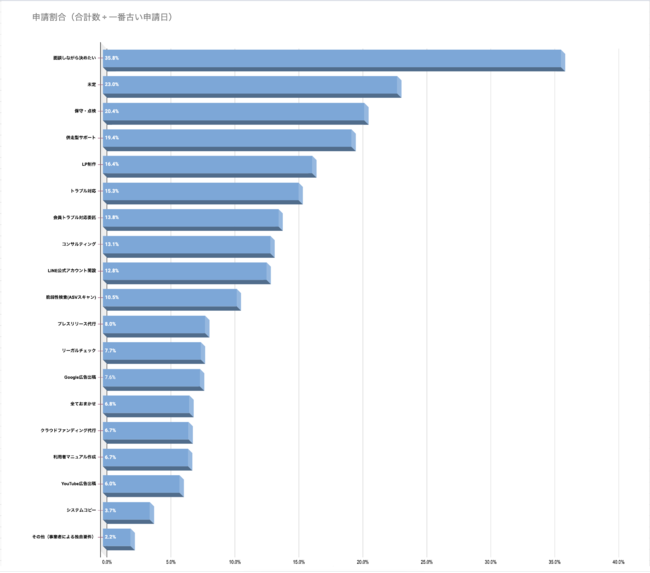 ・申請割合は受付開始日を考慮しているため、新しいサービスは申請割合が不安定になる場合がございます。詳細はビルドサロン マーケティング部 までお問い合わせください。