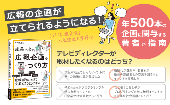 広告・マーケティングの専門誌を発行する株式会社宣伝会議(本社:東京都港区)は、『成果を出す 広報企画のつくり方』(片岡英彦 著)を、12月21日より全国の有力書店とオンライン書店で発売します。