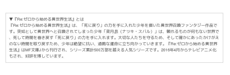 【TVアニメ『Re:ゼロから始める異世界生活』公式サイト】http://re-zero-anime.jp/