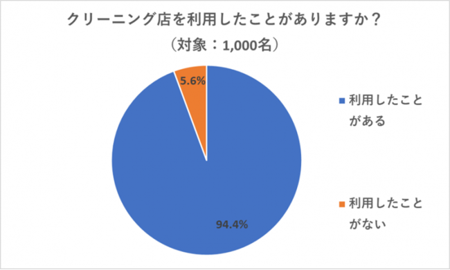 クリーニング店を「利用したことがある」と回答した人は94.4%にのぼり、9割強の人がクリーニング店を利用したことがあることが分かりました。