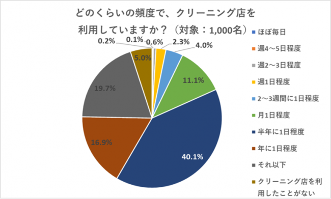 クリーニング店を利用する頻度は、「半年に1日程度」が4割