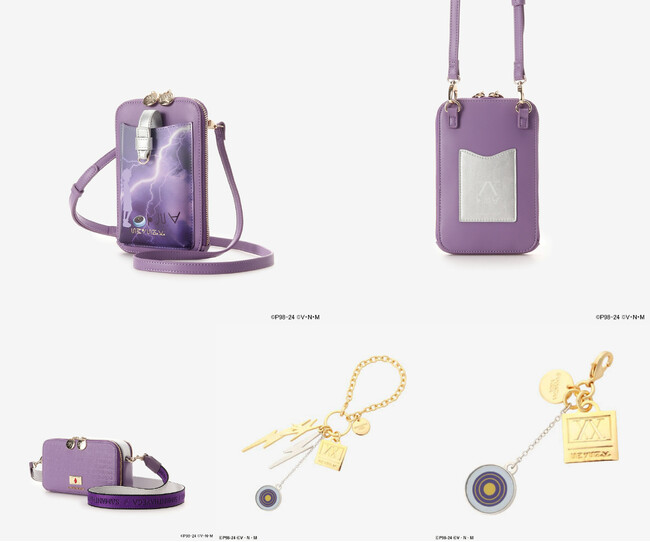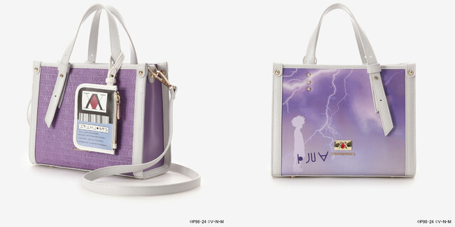 ハンドバッグの背面とスマホショルダーのフロントには「キルア」のシルエットや名前、「落雷(ナルカミ)・雷掌(イズツシ)・疾風迅雷」をイメージしたデザインをプリント。