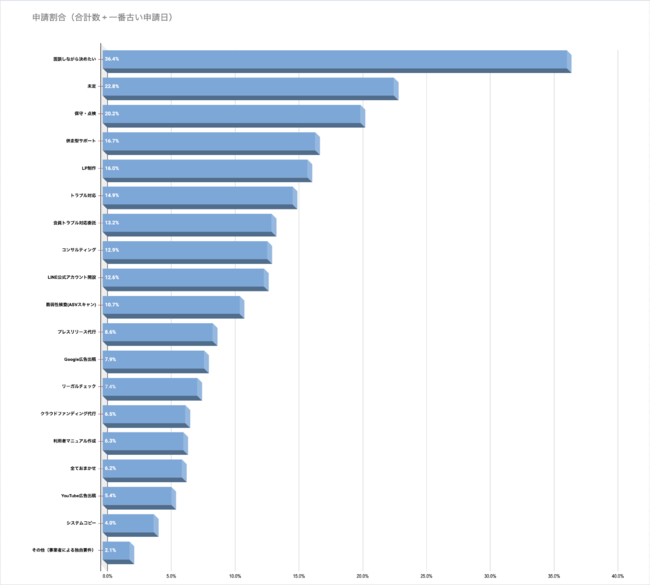 ・申請割合は受付開始日を考慮しているため、新しいサービスは申請割合が不安定になる場合がございます。詳細はビルドサロン マーケティング部 までお問い合わせください。
