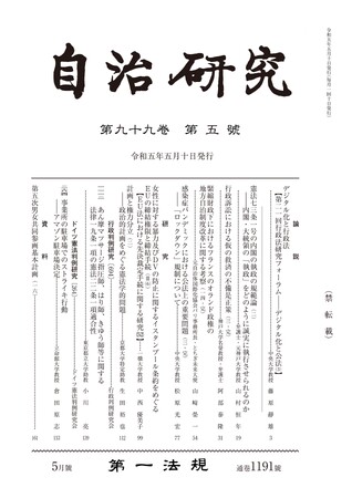 【自治研究】大正14年創刊の伝統ある総合月刊誌!5月号では、「デジタル化と行政法」等の論文が掲載されています!