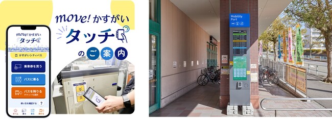 ○利用方法:利用者は専用アプリ「move!かすがいタッチ」のダウンロードにより、「タッチ認証対象乗車券の購入」「タッチ認証対象乗車券による乗降車」が可能となります。なお、専用アプリのダウンロード後の初回登録特典として、「タッチ認証対象かすがいシティバス1日乗車券」をプレゼントします(受け取りにはメールアドレスが必要です)。