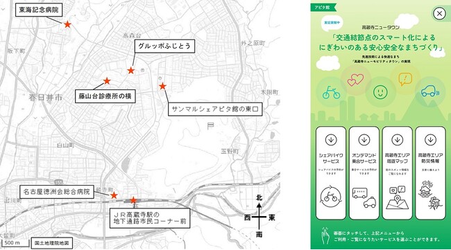 ○モビリティポート設置場所:JR高蔵寺駅、ニュータウン内の商業施設・病院など合計6か所