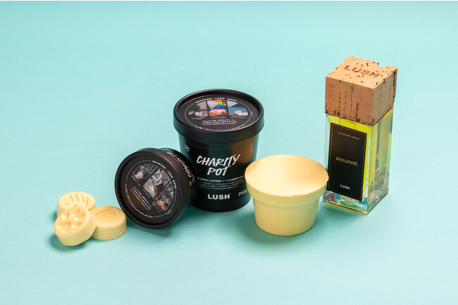 『LUSH チャリティバンク』の対象商品は、2007年から発売している『チャリティポット』を中心に、『チャリティポット』と同系統の香りの固形のローションやパフュームなど以下の計4種のチャリティ商品です。