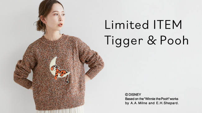 大人の洋品は各キャラクターのイメージカラーになるように3色の糸を引き揃えて編んだニットや、童話の舞台となっている100エーカーの森をテーマにした、オリジナルテキスタイルのファンタジックなスカートをご用意。キッズはプリントのロングTシャツや大人のスカートとリンクコーデができるワンピース、さらに雑貨はキルティングステッチのバッグ・ポーチ、ティガーとくまのプーさんを型押ししたアクセサリーなどを発売します。ロペピクニックでしか手に入らない貴重なコレクションです。