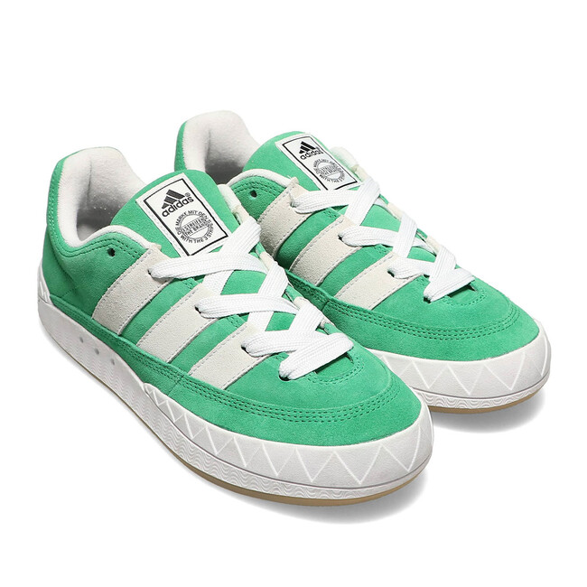 そして昨年復活を果たし再びストリートの注目を集め、定番モデルの座を獲得したADIMATICのオリジナルカラーが再登場。90年代の雰囲気を纏い現代に蘇ったADIMATICは、スケートシューズを彷彿とさせるボリューミーな佇まいが特徴。アッパーにはスエードレザーを採用し、全体のシルエットに合わせた極太のスリーストライプスとファットシューレースが、この現代においてより一層新鮮な印象を与える。分厚いミッドソールと耐久性に優れたガムラバー製のアウトソールを組み合わせる事で、優れた快適性と唯一無二のルックスをもたらす。