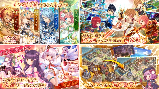 『暁のエピカ -Union Brave-』は、フル3Dのアニメチックなキャラクターでプレイできるスマートフォン向けMMORPGです。個性的な国主が治める4か国から、好きな国を選んで遊ぶことができます。国家vs国家で繰り広げられる大規模リアルタイムPvP「国家戦」や、国家の管理ができる「役職システム」など本格的な要素のほか、オンラインゲームが初めての方でも楽しく遊べるオート機能、多彩なミニゲームなどでファンタジーの世界を冒険することができます。