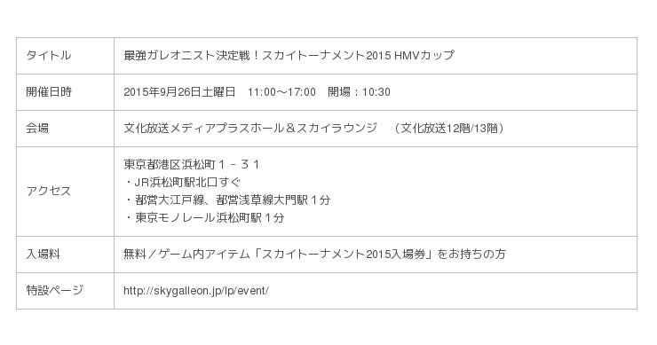 「最強ガレオニスト決定戦!スカイトーナメント2015 HMVカップ」開催概要