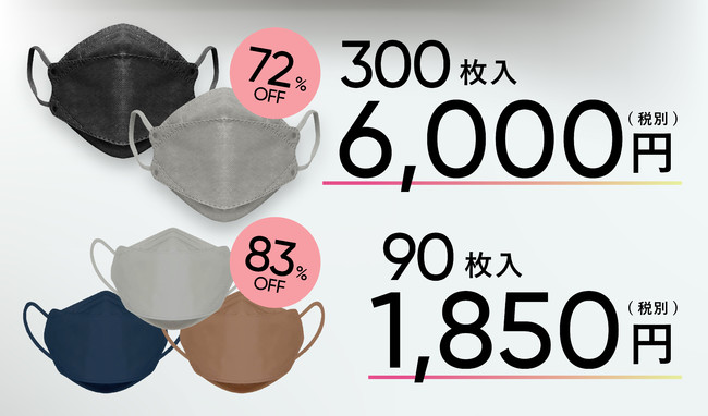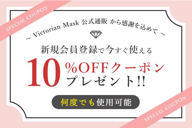 【残り3日間!!】ダイヤモンド形状の立体マスク“Victorian mask”MAX83%OFFの期間限定決算セールを開催中!大容量で一番おトクな300枚入6,000円72%OFFの商品が新たに追加!