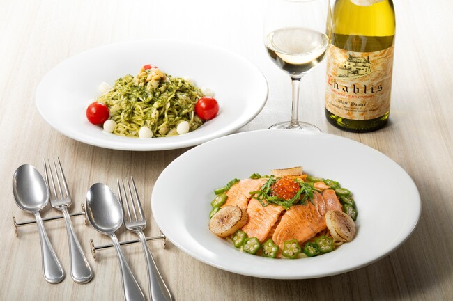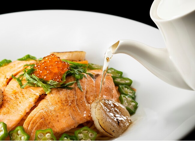 パスタは、シェフとスタッフ達で幾度も試食を繰り返し、十数種類のパスタの中から「スパゲッティ」と「タリアテッレ」の2種類を厳選。プレミアムクラスのデュラム小麦を使った生パスタで、中でも旨味が凝縮された部分のみを使用することで、雑味がなく、甘味や小麦本来の旨味を感じることができます。特におすすめは、日本のお茶漬けから着想を得た「海鮮和風お出汁パスタ」です。白だしやオリーブオイルなどで軽く味付けをしたパスタに、北海道産の帆立をはじめ、鮭やいくら、大葉など和食に合う食材とアクセントとして柚子胡椒を添えて、出汁ポットと共に提供いたします。まずは、生パスタの食感や香り、素材の味を堪能いただいた後、鮭や帆立の身をほぐしてから、少しずつ出汁をかけて味の変化をお楽しみください。国内外のお客様が集まるニセコで、改めて日本の食文化を知り、興味を持っていただくことを願って開発したシェフいち推しのメニューです。