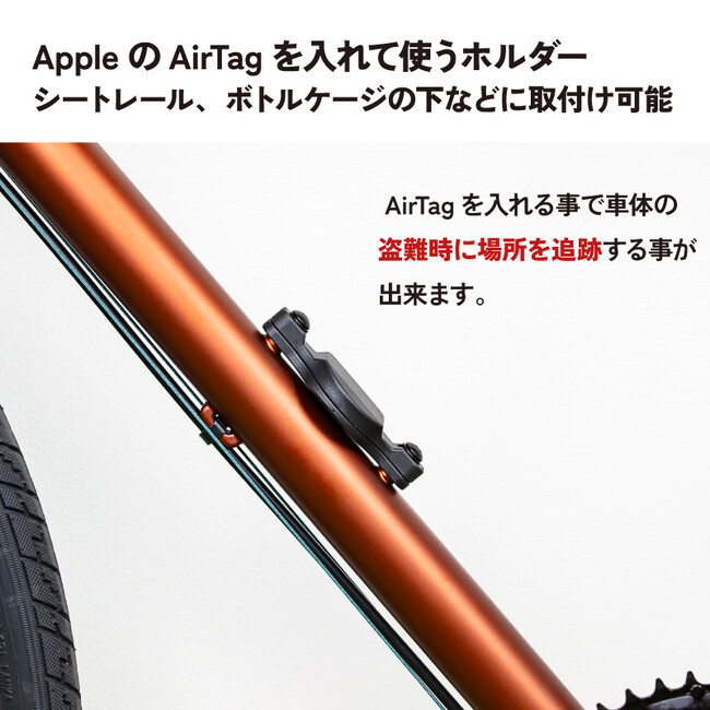 自転車の盗難防止に使われるAirTagを、見つかりにくい場所に隠す事ができるケースです。AirTagを埋め込む事で、いつでも自転車の追跡ができる環境になり、盗難リスクを減らす事に繋がります。