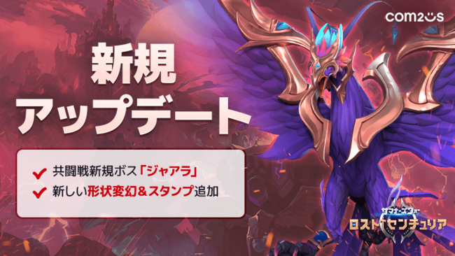 スマートフォン向けモバイルゲームをサービスしている株式会社Com2uS Japanは、iOS/Androidで好評配信中の『サマナーズウォー:ロストセンチュリア』(以下、ロストセンチュリア)にて、PvEコンテンツ「共闘戦」への新ボスモンスター追加を含むアップデートを実施しましたことをお知らせします。