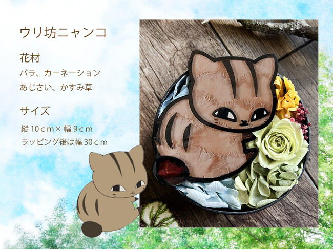 ペットの似顔絵フラワーやキャラクターフラワーを制作するネットショップ「動物のお花屋さんマイペリドット」を運営する株式会社岡田商会(所在地:兵庫県西宮市、店長:小原冬萌)は自社オンラインショップにて、TVアニメ「夏目友人帳」のニャンコ先生を枯れない花で描いたフラワーBOXシリーズにて、隠れた人気を誇る「ウリ坊に扮したニャンコ先生」の販売を開始しました。