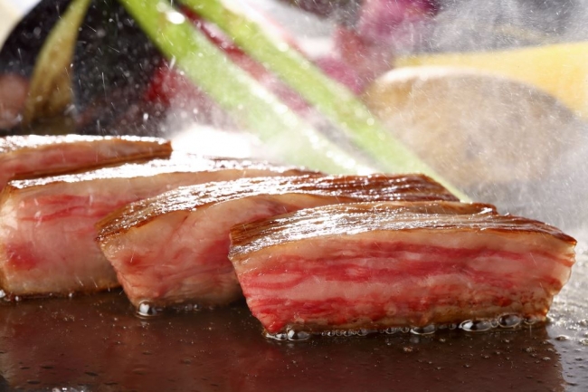熱々のベシャメルソースとオマール海老の香ばしい風味が絶妙にマッチした「活オマール海老の鉄板焼 テルミドール風」(「聖」コース 23,760円)など、主役のお肉はもちろん、様々な豪華食材がシェフの鮮やかな手さばきとともに楽しめる鉄板焼。近江牛をメインに、活鮑やフォアグラの鉄板焼が揃った「煌」コース(29,700円)をはじめ、クリスマスにふさわしい4種類のコースをご用意しました。地上約60mから京都の夜景を望むカウンター席で、大人の時間をお過ごしいただけます。
