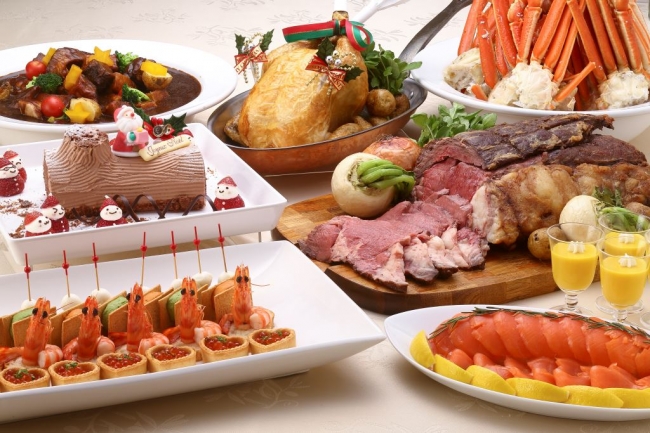 クリスマス期間には、食べ放題の「ローストチキン」が登場。ディナーでは更に「ローストビーフ」、約5時間かけ牛肉が柔らかくなるまでじっくり煮込んだ「牛肉の赤ワイン煮込み」が加わります。