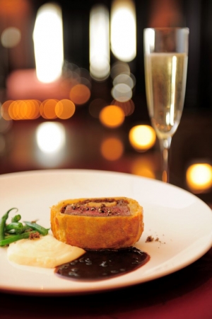 河原町通り沿いの大きな窓からは、煌びやかな街路樹のイルミネーションを間近にお楽しみいただけます。クリスマスメニュー「クリスマススペシャルディナー2015」ではムース状にした帆立貝と海老の旨みをキャベツの中に閉じ込め、トマトベースの“赤”、白ワインとクリームの“白”の2色のソースを添えた「オマール海老と帆立貝のキャベツ包み」、牛肉とフォアグラをバターで香り付けした茸とともにパイで包んだ「牛フィレ肉とフォアグラのウエリントン仕立て トリュフのソース」など洋食の技が光る逸品が揃います。