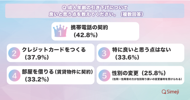 2. 成人年齢の引き下げについて、良いと思う点は「性別が変更できる点」と回答25.8%。