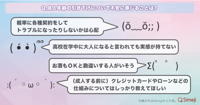 3)「高校在学中のため、”大人”という実感が持てない」「契約トラブルに巻き込まれないか」など