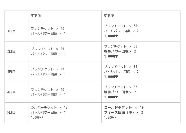 10月27日(火)より連続ログインボーナスで取得できるアイテムが以下のように変更されます。
