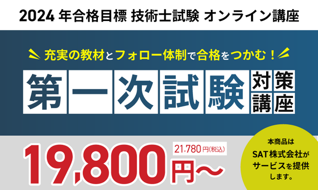 株式会社アガルート(本社:東京都新宿区、代表取締役:岩崎 北斗、以下「アガルート」)が運営する「アガルートアカデミー」は、業務提携元のSAT株式会社の【2024年合格目標】技術士試験講座第一次試験対策講座の取り扱いをスタートいたしました。