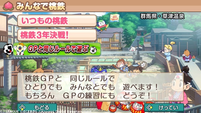 Jリーグコラボ特別ルールは、オフラインでも「GPと同じルールで遊ぶ」モードとしてプレイ可能ですので、ご家族やお友だちともお楽しみいただけます。もちろん「桃鉄GP」の練習にももってこいです!
