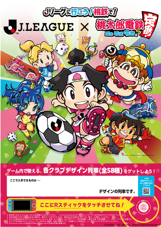 また、 7月30日に開催されるJリーグ公式戦から、全58クラブのホームスタジアムに行くと、ゲーム内で利用可能なクラブオリジナル列車がもらえる「Jリーグに行こう!桃鉄で!」キャンペーンがスタートします。このほかにも、コラボグッズの販売やイベントなど、スタジアムでも『桃鉄』を楽しめるさまざまな施策が予定されていますので、Jリーグや各クラブの公式サイトで情報をチェックしてください。