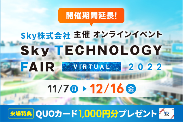 現在開催中のSky株式会社主催オンラインイベント「Sky Technology Fair Virtual 2022」が、ご好評につき12月16日(金)まで会期を延長いたします。