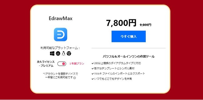 1年間プランは定価:9,800円を【2,000円OFF】の\7,800円/でご提供。