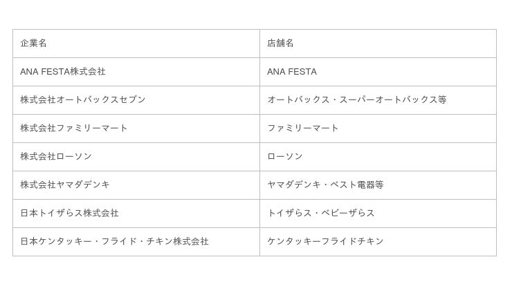 ■ご利用可能な店舗(一部抜粋(順不同))