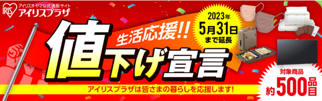 アイリスオーヤマ株式会社(本社:宮城県仙台市、代表取締役社長:大山 晃弘)は、食品をはじめ多くの生活用品の価格高騰が続くなか、日常生活を支える商品を安心して手に取りやすい価格で提供したいという想いを込めて、公式通販サイト「アイリスプラザ」で2022年9月から「生活応援宣言」を実施しています。