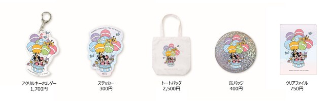 ミッキー&フレンズたちが気球に乗って、日本各地のゲストのみなさまに会いに行く様子をイメージしたアートを用い、アクリルキーホルダー、缶バッジ、トートバッグなどこのイベント会場でしか手に入らないグッズを多数展開します。
