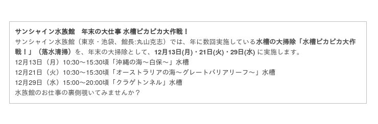 サンシャイン水族館(東京・池袋、館長:丸山克志)では年に数回、特定の水槽の落水清掃を実施しています。