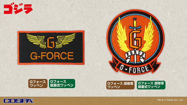 さらに「Gフォース」をはじめ、「Gフォース 部隊章」「第一機龍隊」「国連G対策センター」それぞれのワッペンも再現。アイロンで接着するタイプと面ファスナータイプの2種がラインナップ。