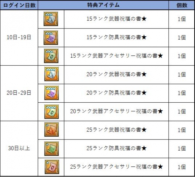 本日9月26日(水)より、ゲームにログインした日数に応じて装備の強化を確実に成功させることができる「祝福の書」各種がもらえる「ログインキャンペーン」を開催しています。この機会にお気に入りの装備を強化してみましょう!