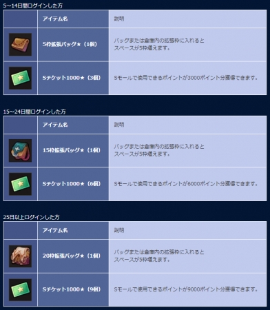 ●拡張バッグがもらえる!ログインキャンペーン実施中!