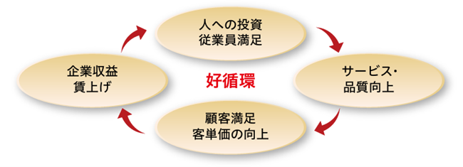 すかいらーくグループは、「価値ある豊かさの創造」を経営理念とし、人が付加価値を生む原動力であるという考えのもと、「店舗中心経営」を推進しています。時代に合わせて新しい働き方を改革し、多様な人財が活躍できる社会を目指すことで、組織力を高め成長していきます。