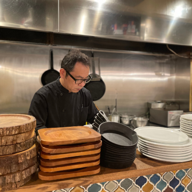 調理師専門学校卒業後、イタリアン15年、フレンチビストロ15年勤務してきた洋食のエキスパート。「千住MEATの料理で笑顔になってほしい」と語る津畑は今回のメニュー考案時にも常にお客様の立場に立ち、試行錯誤の末にグランドメニューが完成した。千住MEATは、そんなシェフの人柄溢れる想いが詰まったメニューと厳選ワインに惹かれたリーピーターの多い『ありそうでなかった!』北千住で愛される肉バルへと成長しています。