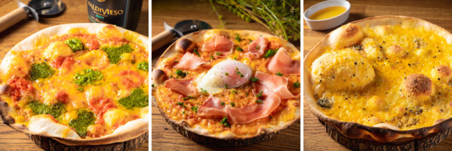 【写真中央】半熟たまごのビスマルクピザ 690円(税込)
