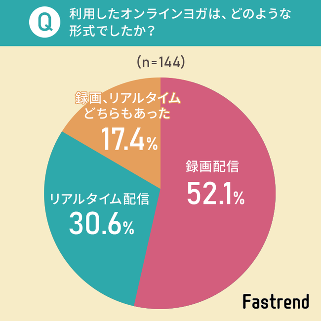 では、オンラインヨガを利用したことがある方の中では、録画配信派とリアルタイム配信派のどちらが多いのでしょうか。