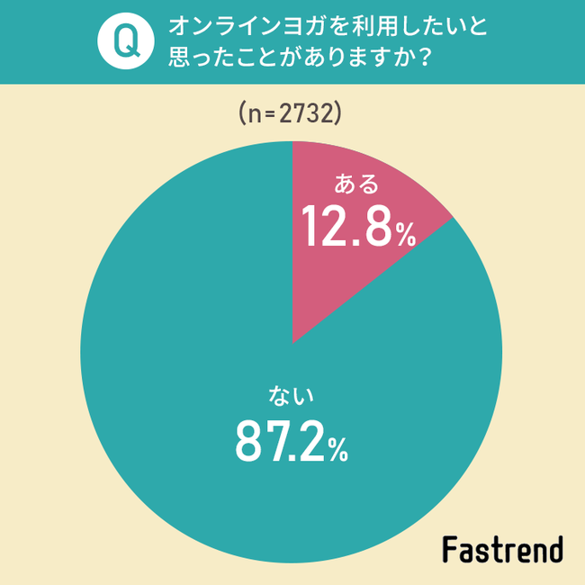 続いて、「オンラインヨガを利用したことがない」と回答した2732人の方に、オンラインヨガを利用したいと思ったことはあるかについて聞きました。