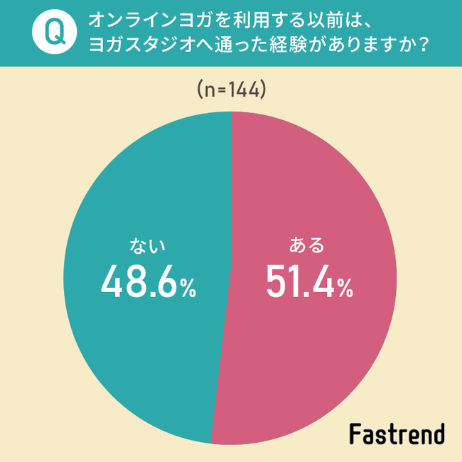 また、オンラインヨガを利用する以前はヨガスタジオへ通った経験があるかについても聞いたところ、以下のような結果になりました。