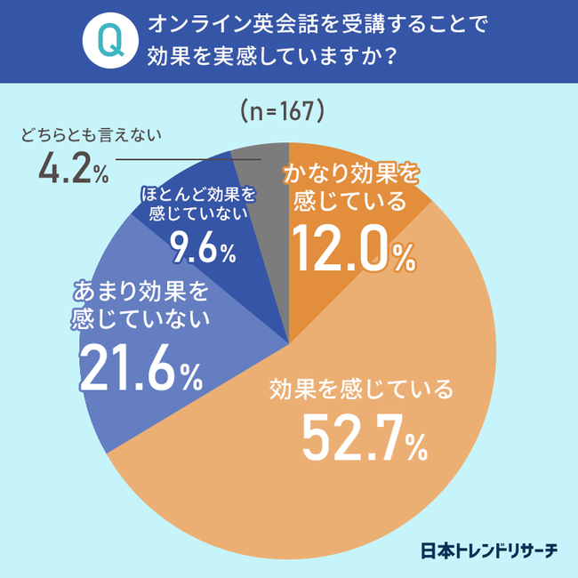 では、オンライン英会話を受講したことがある方々は、どれほど効果を実感できているのでしょうか。