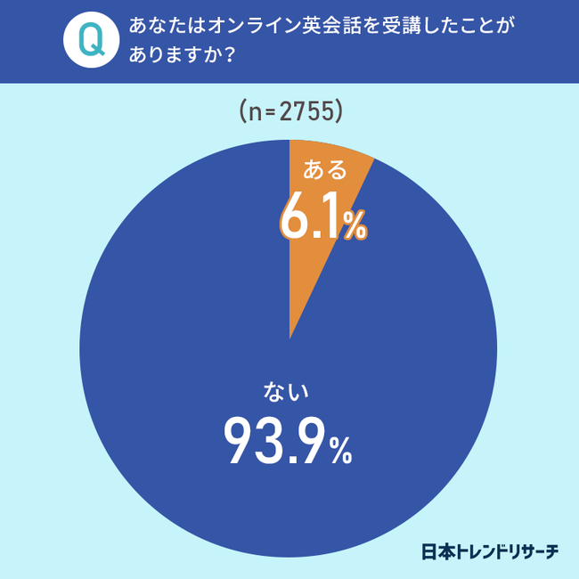 まず、全国の男女2,755人の方に、オンライン英会話を受講したことがあるかについて聞きました。