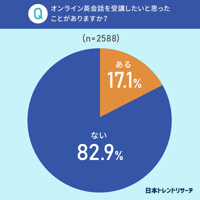 443人(17.1%)の方が、オンライン英会話を受講したいと思ったことがあると回答しました。