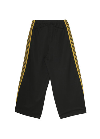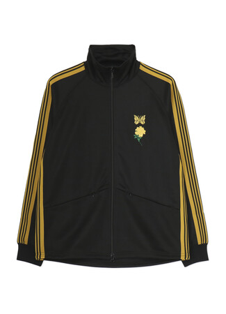 定番の型とは異なり全体的にリラックス感を取り入れた”Warm Up”シリーズでは、ジャケットの裾リブが取り払われ、パンツはよりワイドフィットなシルエットになっている特別なデザインとなっています。また、ポケットは全てジップタイプのシームレス仕様で、ジャケットのフロントやパンツのバックに斜めに配置しています。今回のコラボレーションではイエローのラインを採用し、<NEEDLES>を象徴する蝶と、ヨウジヤマモトのアイコニックなモチーフの牡丹の花もイエローにカスタムしました。
