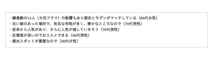 コメントを見てみると「大河ドラマで舞台となったから」「観光スポットが豊富」「従来から人気が高い」という内容が多かったです。